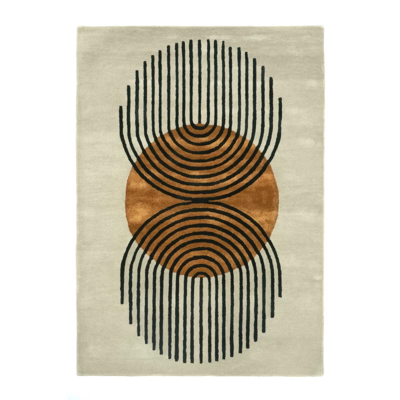 Wzór dywanu inspirowany geometrią, zwłaszcza z wykorzystaniem koła i łuków, dodaje mu nowoczesności i dynamiki. Koralowopomarańczowe koło stanowi punkt centralny kompozycji, przyciągając wzrok i nadając dywanowi pewną ekspresję. Czarne wzory, które są wariacją na temat łuków, dodają mu głębi i kontrastu, tworząc interesujący efekt wizualny. Dywan Fargotex Handmade Stella Coral to nie tylko piękna ozdoba, ale także wyjątkowy przedmiot o dużej wartości rzemieślniczej. Jego ręczne wykonanie w Indiach dodaje mu autentycznego charakteru i unikalności. Dzięki harmonijnemu połączeniu koloru kremowego, koralowopomarańczowego i czarnego oraz zastosowaniu wysokiej jakości materiałów, ten dywan stanie się wyrazistym akcentem, który wprowadzi do Twojego wnętrza przytulność, styl i artystyczną ekspresję.