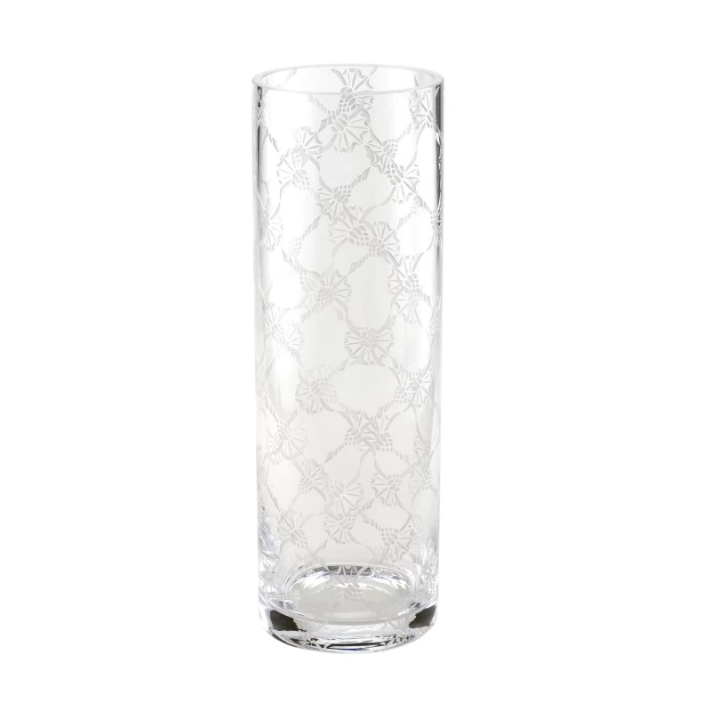 Połączenie transparentności szkła z subtelnym jasnym motywem we flagowy dla marki JOOP! wzór kwiatów chabru gwarantują design najwyższej jakości. Całość podana w formie pięknego, smukłego cylindra prezentuje się niewykle wywornie. Minimalistyczny kształt w połączeniu z ciekawym wzorem sprawia, że wazon odnajdzie się świetnie we wnętrzach zarówno w stylu glamour jak i nowoczesnym. Grube dno ze szkła sprawia, że wazon jest stabilny i nie przewróci się obciążony nawet największymi bukietami.