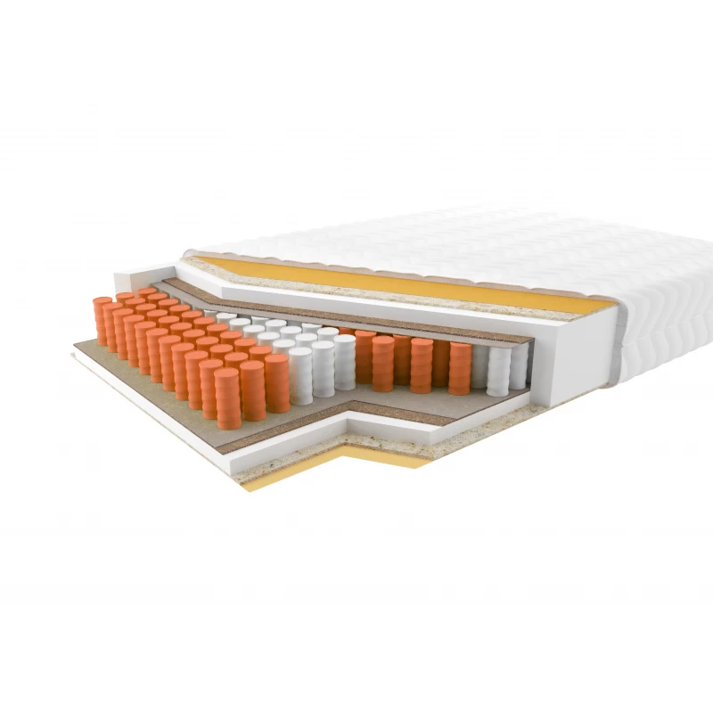 Ortopedyczny materac to prawdziwy mistrz komfortu, zaprojektowany z myślą o Twoim zdrowiu i dobrym humorze! Wyposażony w aż 7 stref twardości, perfekcyjnie dopasowuje się do naturalnych nacisków Twojego ciała. W sprytnie rozmieszczonych kieszonkach z fizeliny znajdziesz sprężyny, które niczym superbohaterowie pracują tam, gdzie są najbardziej potrzebne – mocniejsze w miejscach większego obciążenia, a delikatniejsze tam, gdzie liczy się subtelność. Wszystko po to, by materac doskonale współgrał z Twoją sylwetką, niezależnie od tego, jaką pozycję przyjmiesz w nocy.