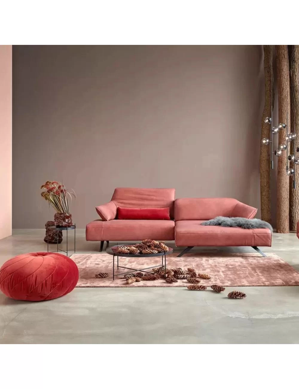 Prezentowana cena dotyczy różowego modelu ze zdjęcia o wymiarach 276x165 cm z dwoma oparciami, wykonanego z ekskluzywnej skóry licowej Leonessa w kolorze Piemont. Posiada manualną funkcję cofania obu oparć oraz elektrycznie wysuwany podnóżek w części kanapowej (wersja na kabel, bez akumulatora). Aby skonfigurować model Signa w innej tkaninie, w rożnych wymiarach i poznać pełną funkcjonalność skontaktuj się z nami.