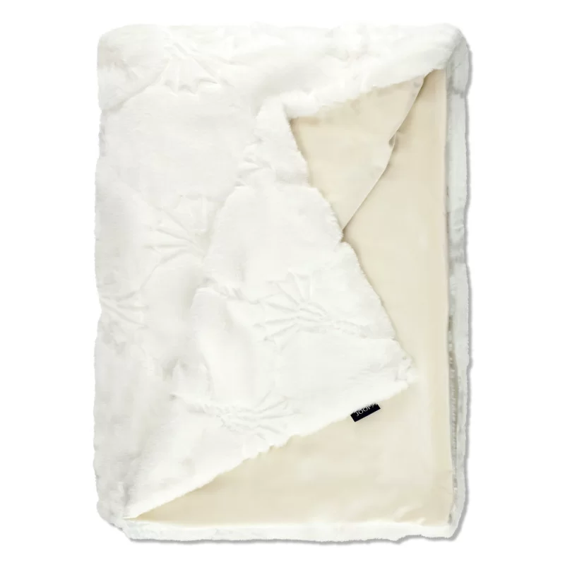 JOOP! Cozy Cornflower White – biały pled futerkowy jak świeży śnieg